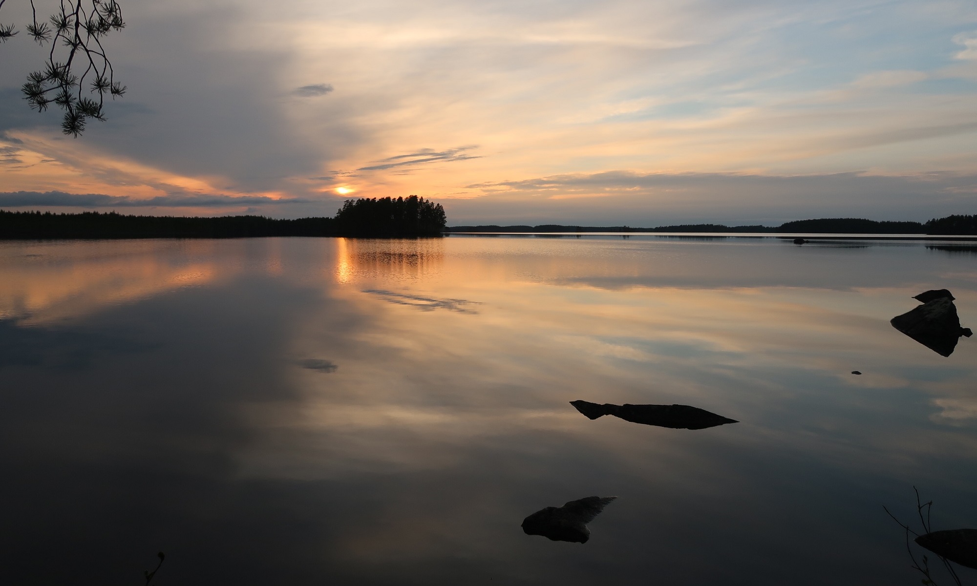 Eikä siinä kauhean kauaa sitten mennyt kun jostain syystä sain siiman niin solmuun että oli pakko lopettaa koko virvelöinti. Kertaakaan ei ollut sen tuntuista että olisi kala napannut kiinni. Eikä kyllä missään päin polskahdellutkaan. Siispä eväsleivät esiin ja istahdin hetkeksi nuotiopaikan penkeille.