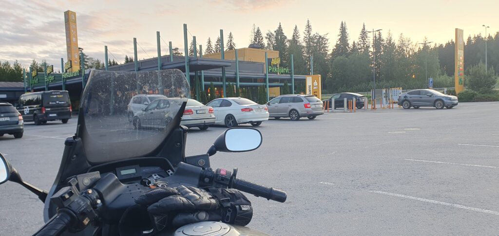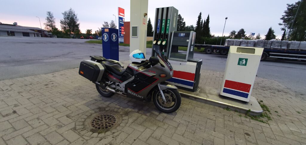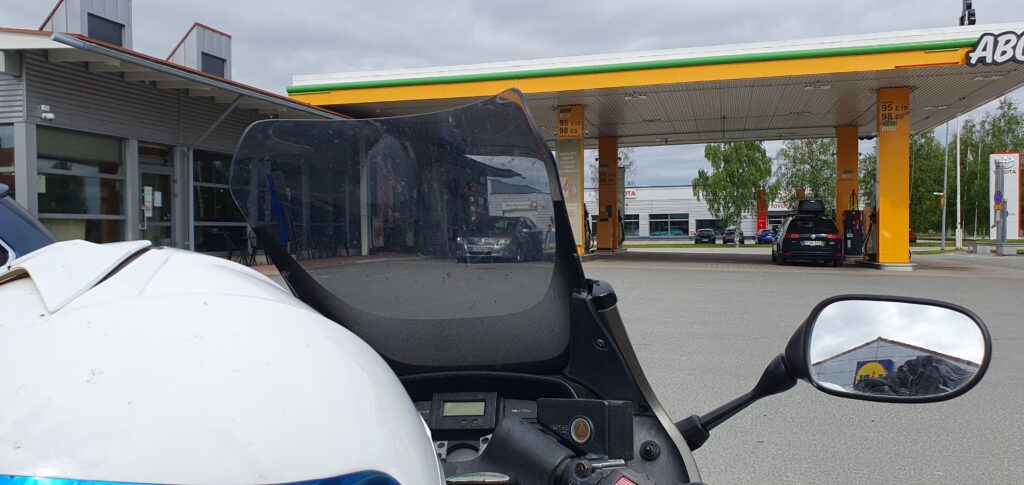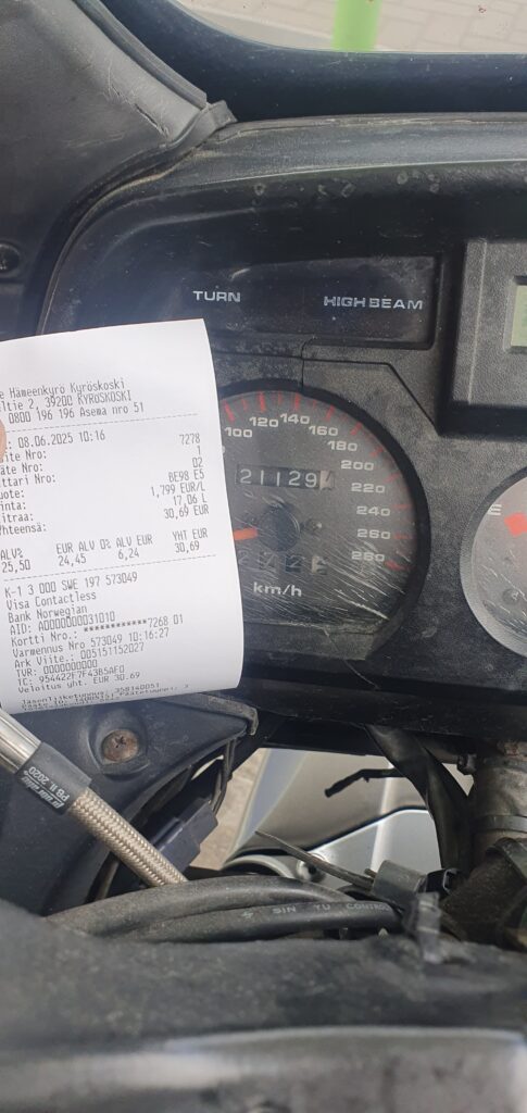 Kävin sitten Hämeenkyrössä tankilla ja mietin että minnehän sitten. Häijää oli siinä lähellä ja siinä voisi miettiä lähtisikö kiertämään Näsijärveä vai suuntaisiko kohti Poria. Harjoittelin myös tankkauskuitin kuvaamista rautaperseajoa varten. Vituiksihan se olisi mennyt heti.
