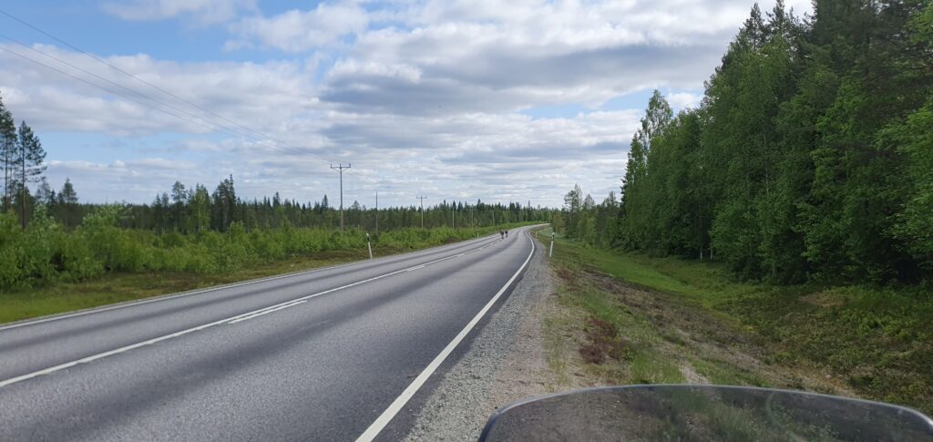 Matka jatkui kohti Liminkaa ja väkeä olikin jo enemmän liikkeellä. Moottoritiellä ajelin aika huoletta ja kohta jo käännyinkin Kuusamoa kohti. Siellä oli autoja yhtenä letkana ja Kiiminkiin päästyäni tankkasin jälleen. Tankille oli oikein jono ja piti hetki odotella. Ei mulla vieläkään ollut mikään hätä eikä nälkäkään, joten jatkoin aikalailla samantien kohti Kuusamoa. Ajattelin että siellä voisin pysähtyä vähän pitempään.