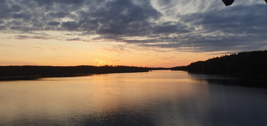 Tämä on yhdeltä rautaiselta sillalta auringon laskun jälkeen. Olisi pohjoisempanakin ollut hienoja maisemia ja jotenkin nyt harmittaa kun ei tullut pysähdyttyä sen vertaa että olisi ottanut pari kuvaa. Ei tässä nyt niin kiire olisi ollut.