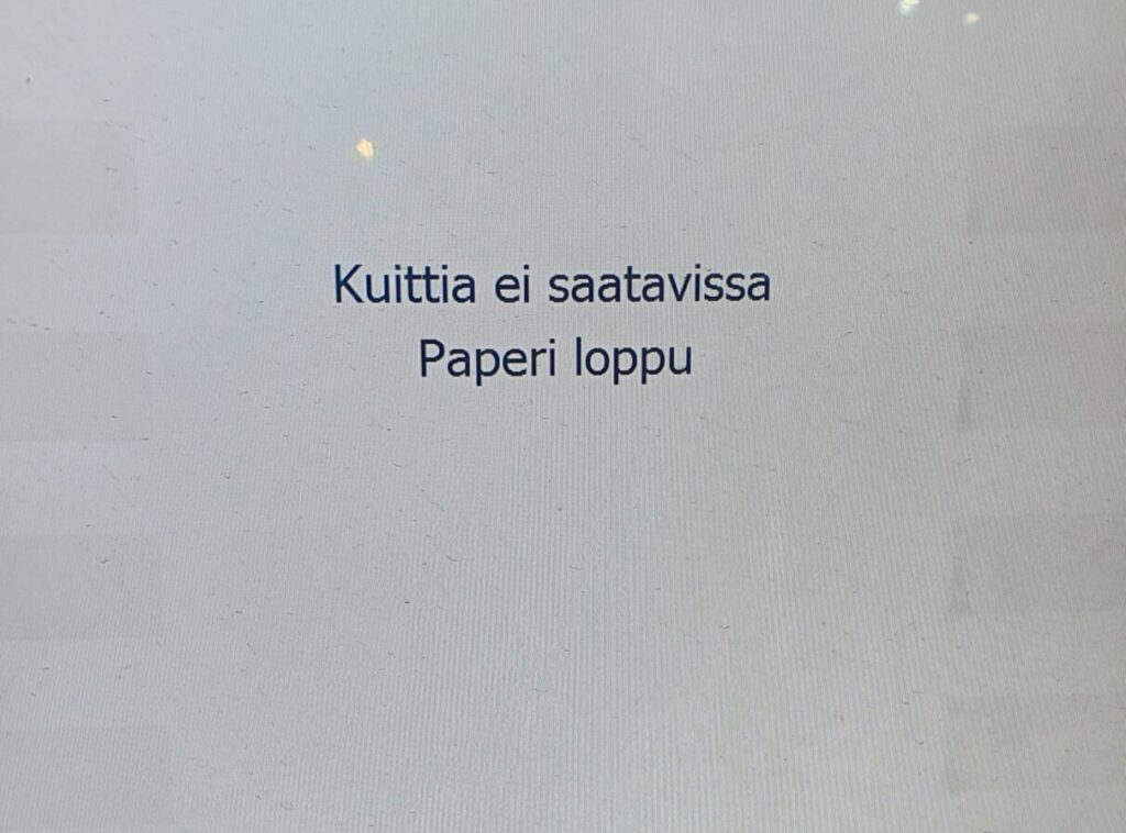 Kylmääni otin kaakaon enkä voinut vastustaa paniinia. Maksoin ne ja sitten ajattelin että vaikka onkin vähän kaukaa haettua niin kysympä myyjältä, voisiko se loihtia kuitin tankkauksesta. Ja perhana, onnistuihan se. Sanoin että olen tässä suorittamassa tällaista ajohommaa ja tänään on mittariin tullut jo toistatuhatta kilsaa, harmi jos se jää tästä kiinni ettei saa kuittia. En minä normaalisti niin kuitin kipeä ole, nyt vain tuntuu että olisi mennyt tämän päivän suoritus hukkaan jos ei saa kuittia. Näytin kuvasta mitä tuli tankattua ja sain lapun kouraan. Jipii!
