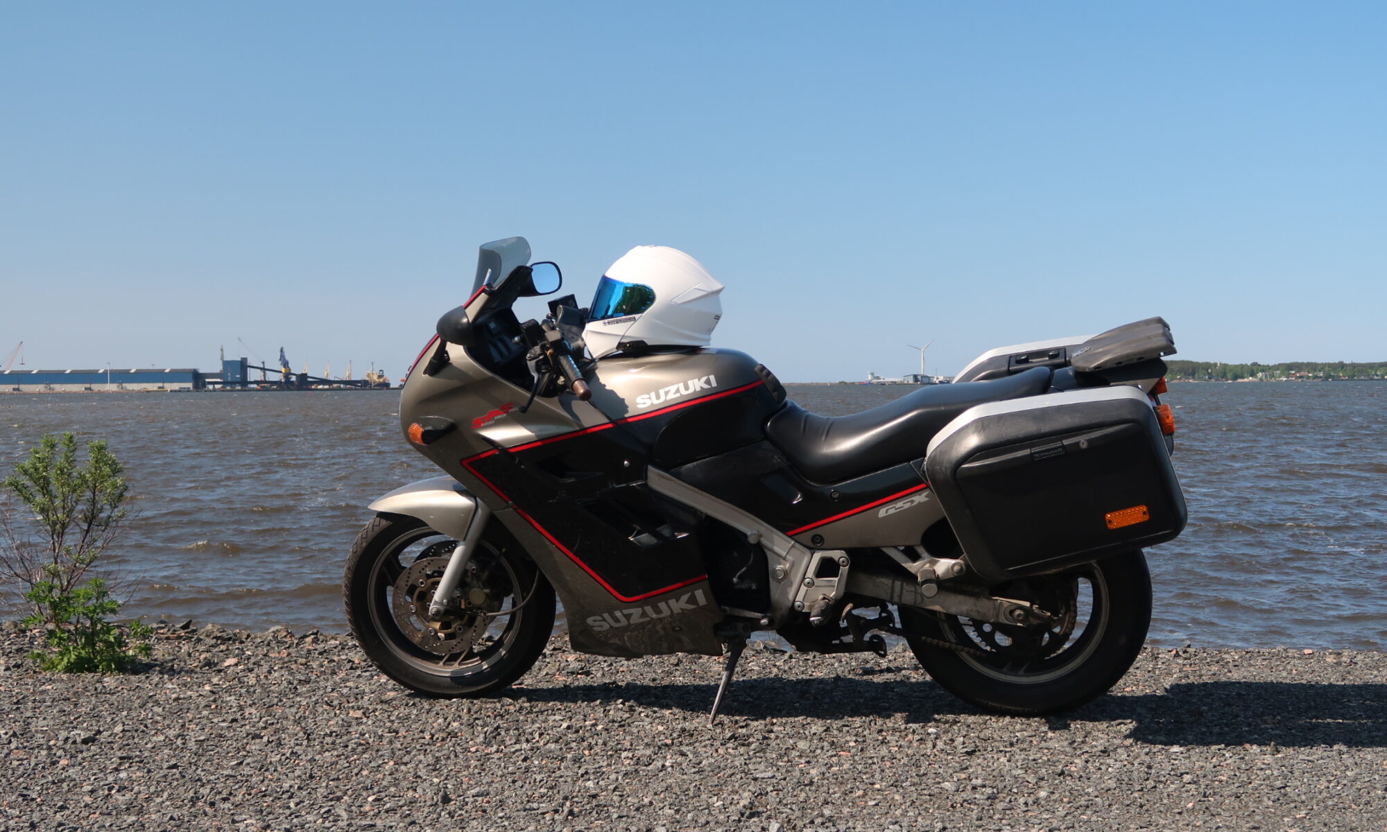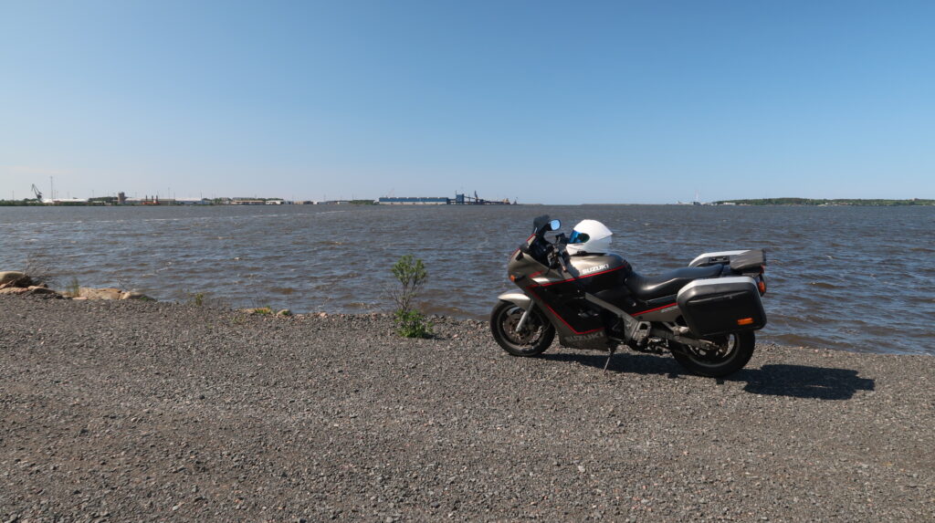 Eipä se auttanut kuin ottaa tankkia myöten kaikki irti. Hetken päästä viereen ajoi joku Porilainen Bemarilla. Se hoksasi kokeilla sitä jalkatuen katkaisijaa ja sittenhän pyörä hörähti käyntiin. Kävi hetken ja sitten ei taas mitään.